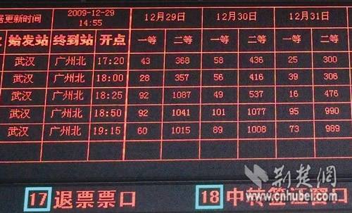 12月29日下午2點(diǎn)55分記者看到的武廣高鐵車票銷售情況