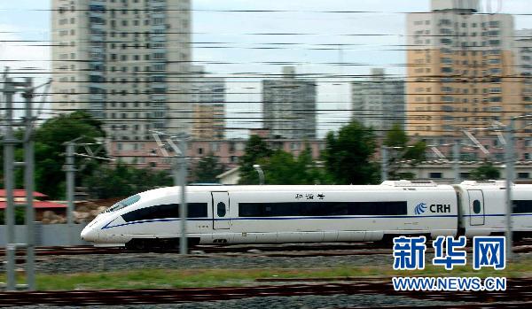 這是我國第一條擁有完全自主知識(shí)產(chǎn)權(quán)、具備世界一流水平的城際高速鐵路——京津城際高速鐵路的列車從北京南站駛出(2008年8月1日攝)。新華社記者公磊攝